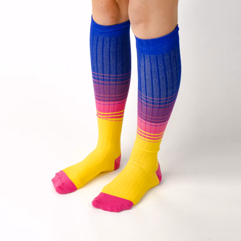 Snygga stödstrumpor i somriga färger som passar lika bra för träning, arbete, resor och vardagsbruk.